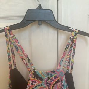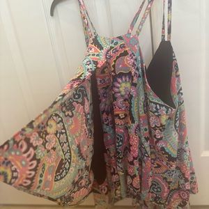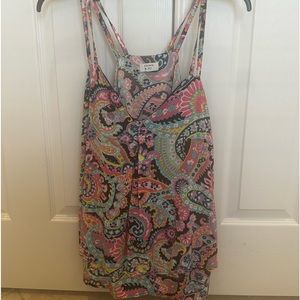 Super cute gently worn strappy summer top is perfect paired with shorts, skirts or skirt, jeans or capris. Tiered and lined so much detail in this sexy paisley number.