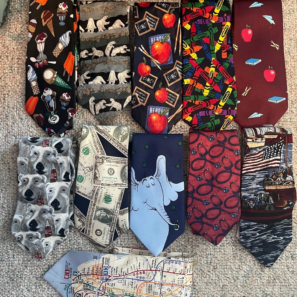 Collection of fun theme ties. All were kept in pristine condition. (Father is a retired teacher and no longer wears them). Full length.