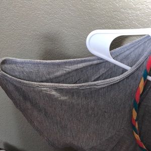 A grey top with a colored braid to add some nice color! It is in excellent condition and is designed to exposure your shoulders