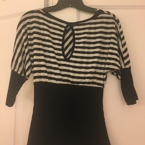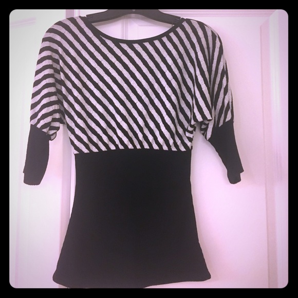 Arden B XS, black/silver top with small cut out in the back. Bottom of the shirt and sleeves is fitted. Perfect condition!