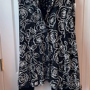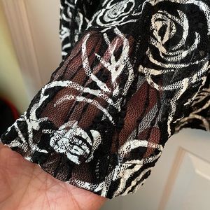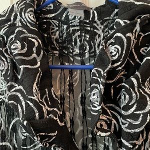 Great accent to pants or skirt. A back camisole goes underneath as it is sheer. Has a fun cowl like collar and a line bottom. Slenderizing.