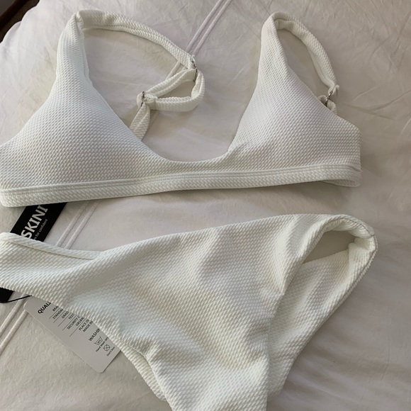 Tags still attached, never worn! Ordered a couple white bikinis at once and just didn’t get around to wearing this one. Flattering! I am size 25-27 in the waist, 34B bra size.