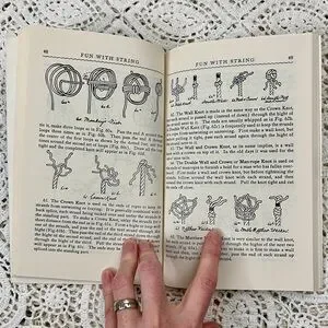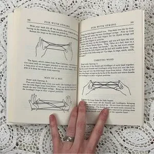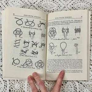 -Illustrations of string, knots, hands doin string things