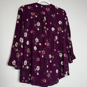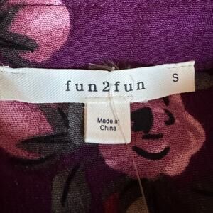Fun2Fun 3/4 Sleeve Split Neck Purple Floral Rayon Top NWOT Size Small