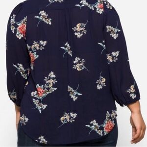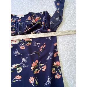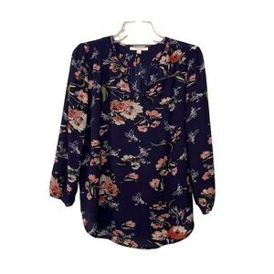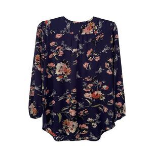 Fun2Fun Navy Blue Floral Print V-Neck Blouse Top Size Small NWOT