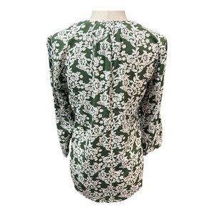 Fun2Fun Pleated Detail Blouse~Size X-Small~Green White Floral Top ~ L13 14