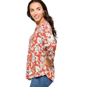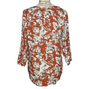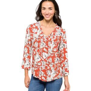 Fun2Fun (S) Maley Pleated Detail Blouse Stitch Fix Floral 3/4 Sleeve V Neck Top