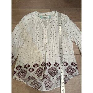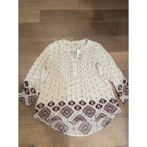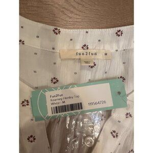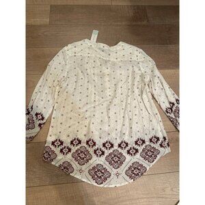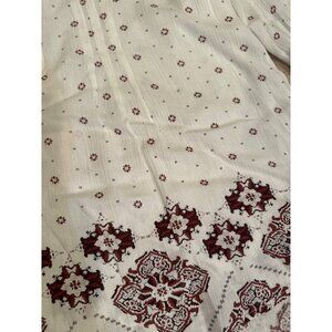 Fun2Fun White Kearney Henley Top M With Burgundy Pattern Boho Style Lightweight