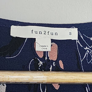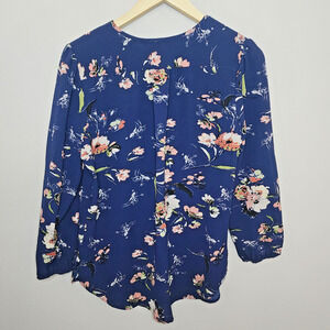 Fun2Fun Womens Floral Blouse~Size S~Navy 3/4 Sleeve Top~Stitch Fix NWOT