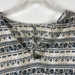 Black and cream design with a cross cross front detail. Bell sleeves.