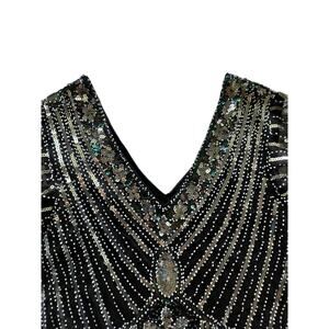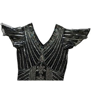 Fundaisy Women's Black Vintage 1920s Gatsby Flapper Sequin Midi Dress Size M