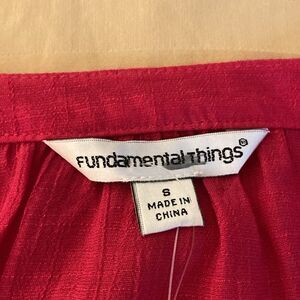 Fundamental Things NWT woman’s fuchsia blouse with banded collar and slight V neck, 4 button closure, lace insert down front of blouse & on sleeve bottom. 3/4 sleeve with elastic cuff.