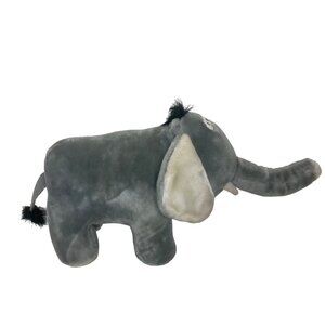 Stuffed elephant squeals when you squeeze him. Measures approximately 18" from end of trunk to tail. From 1987.