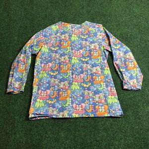 Fundamentally Cotton By White Swan Scrubs Sz S Long Sleeve Button Caterpillars