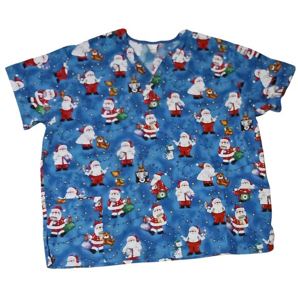 Fundamentally Cotton by White Swan Christmas Santa Medical Unisex Scrub wrh 2 pockets in the front XL-1X EUC. See measurements in pictures since there is no size tag.