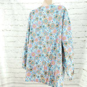 Fundamentals By White Swan Womens Sky Blue Floral Medical Smock Scrub Top Size L