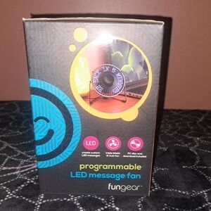 Create custom LED messages with this 6-inch fan. Features a triple blade design and USB connectivity. Includes PC software for easy programming. Brand new in box, never opened. Perfect for your desk or a front counter as it is a great conversation piece.