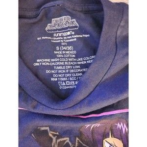 Show off your love for My Hero Academia with this stylish and comfortable navy blue T-shirt from Funimation. Featuring a crew neck and short sleeves, this shirt has a regular fit that is perfect for both men and women. The front graphic showcases your favorite anime character and is made of high-quality cotton material. This shirt is perfect for everyday wear, and its solid pattern and logo accents make it a great addition to any casual outfit. Whether you're a fan of anime or just looking for a comfortable and stylish T-shirt, this Funimation My Hero Academia shirt is a must-have.