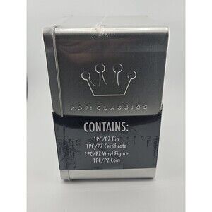 Now is your chance to welcome Pop! Batman into your DC Super Heroes collection! This exclusive collectible comes on a detachable base and is packaged in a silver-tone window box, which nests within a tin, protective case. The tin case is lined with a black, velvet cushion, and has been embossed to resemble a vault door, which opens on a hinge to reveal Pop! Batman! This Pop! Classics figure also includes an enamel Pop! Pin and a stainless-steel Pop! Coin, both featuring Pop! Batmans face, as well as a foil Certificate Card detailing his biographical information. Only 25,000 of this limited-edition collectible were made! Vinyl figure is approximately 4.65-inches tall. Warning: Choking Hazard. Collectible comes with small parts. Not for children under 36 months. Pin contains functional sharp points. Item Number:68876 License:DC Comics Sublicense:Batman Product Type:Pop! Product Subtype:Pop! Classics