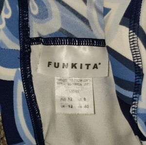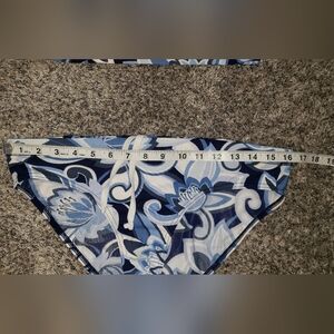 This vibrant bikini set features a striking floral pattern in blue and white, perfect for making a splash. The sporty top with thin straps ensures a secure fit, while the matching bottoms offer comfortable coverage. Ideal for a stylish day at the beach or pool.
