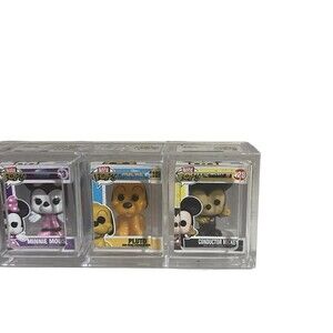 This Funko BITTY Pop! vinyl figure features Disney characters Mickey Mouse, Minnie Mouse, and Pluto in a miniature design. Perfect for fans of the popular Friends TV show and Disney franchise, this collectible is made of vinyl material and belongs to the Pop! product line. The set includes Conductor Mickey, making it an ideal addition to any Disney collection. Get your hands on this must-have Funko figure today! Without a box. See pictures, please. Ships quickly (1001A)