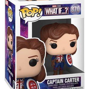 From What If?, Captain Carter, as a stylized Pop! vinyl from Funko! The figure stands 3 3/4 inches and comes in a window display box. Check out the other What If? figures from Funko! Collect them all!.