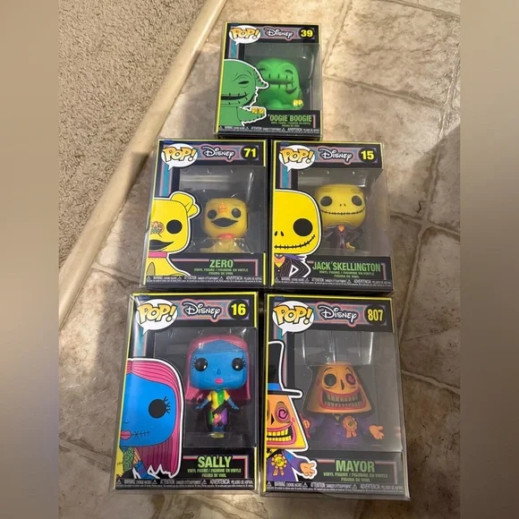 Funko Disney Nightmare Before Christmas Blacklight Lot - Jack, Sally, Zero, Mayor, and Oogie