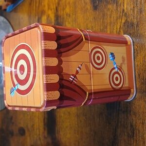 Delight your child with this colorful circus-themed toy tin. Featuring vibrant red and brown hues, it's perfect for imaginative play.