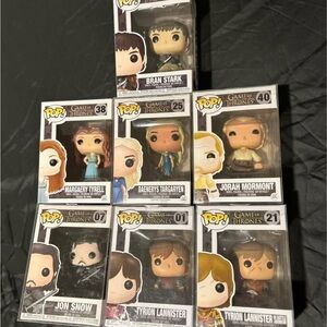 Collection of Funko Pop figures from Game of Thrones. Includes popular characters in detailed designs.