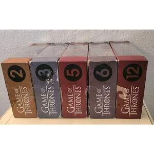 Funko Game of Thrones Legacy Collection Set of 5 Figures #2,3,5,6,12 See Desc. This is a set of 5 different Game of Thrones figurines. '12 Daenerys Targaryen. She is new in an unopened box. #5 is also Daenerys Targaryen in a different outfit and with different accessories. It is in an unopened box. #2 Tyrion Lannister is in an unopened box. # 3 The Hound is in an opened box. He is missing his weapons. Just the figure himself. #6 Ned Stark is also in an opened box missing his weapon. Both of these last 2 figures are new just missing the accessories.