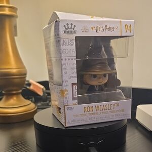 Charming Ron Weasley figure by Funko. Features classic wizard hat and robe.