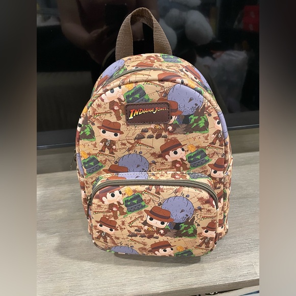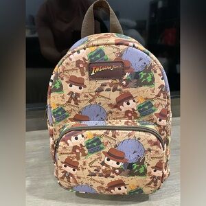 Funko kids mini backpack with Indiana Jones design. Zippered front pocket for small items. Padded adjustable straps for comfort. Playful character print on durable fabric. Tags removed, new, never used.