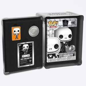 Includes an enamel Pop! Pin and a stainless-steel Pop! Coin, both featuring Pop! Jack Skellington’s face, as well as a foil Certificate Card detailing his biographical information. Only 25,000 of this limited-edition collectible were made!