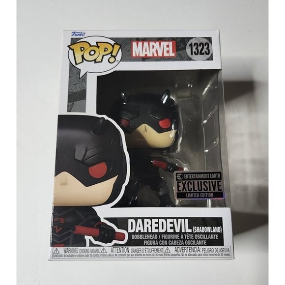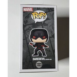 Daredevil Shadowland, as a stylized pop vinyl! Figure comes in a window display box. Shadowland has a new menacing ruler - Daredevil! Matt Murdock returns to Hell's Kitchen when he becomes the leader of The Hand, a secret ninja clan.