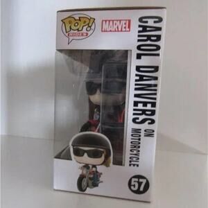 From Captain Marvel, carol Danvers on motorcycle, as a stylized POP Rides from Funko! Figure stands about 5 inches and comes in a window display box. Check out the other Captain Marvel figures from Funko! Collect them all