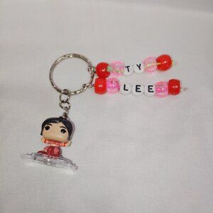 This handmade keychain features Ty Lee from the Avatar: The Last Airbender. The name and accent beads are removable, each with a clasp, allowing you to customize your collection. It's a must-have for any Avatar: The Last Airbender collector.