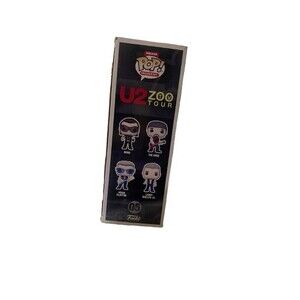 Funko Deluxe Pop Moment: U2 Zoo TV Tour 1993 #05 Set comes new in the box and contains The Edge, Bono, Larry Mullen, Jr., and Adam Clayton on stage in a concert setting.