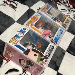 Set of three Funko Pop! figures. Includes characters from popular series. Vibrant and collectible.
