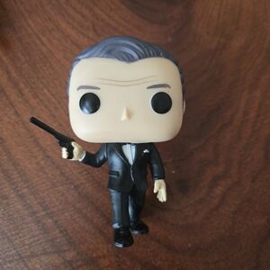 Funko Pop Figures with Black, Gray, and Cream Outfits From James Bond Movies