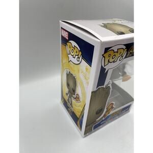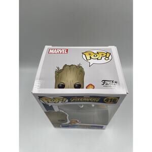 The product is a Funko Pop Marvel Avengers Infinity War Groot with Stormbreaker Vinyl Figure 416. This collectible figure is based on the character Groot from the Avengers franchise and is made of vinyl material. It is part of the Pop! product line by Funko and is a common rarity item from 2021. The figure is in its original unopened packaging and was not modified. It was released as a prototype at San Diego Comic Con and is a standard size collectible figure for Marvel fans.