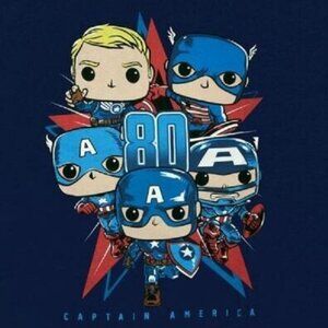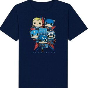Funko Pop! Marvel Captain America T-Shirt Crew Neck Blue Size S New
