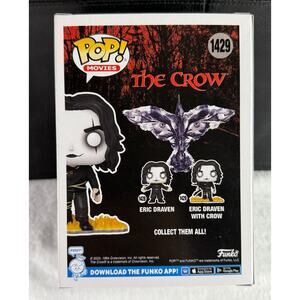 Officially licensed Funko Pop! Movies #1429 Eric Draven with Crow vinyl figure. Inspired by the iconic 1994 film, this detailed collectible features Eric Draven in his signature black outfit, standing on a fiery base with his loyal crow perched on his arm. Released in 2023, this Pop! figure captures the dark, vengeful aura of the cult classic hero.