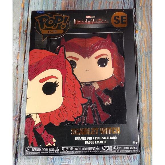 Official Funko Pop! enamel pin featuring Scarlet Witch from Marvel's WandaVision series.