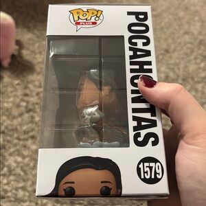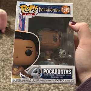 Funko Pop figure of Pocahontas in a canoe with a raccoon. Ideal for collectors and Disney enthusiasts.