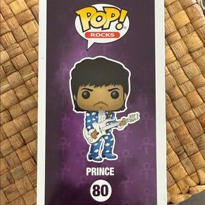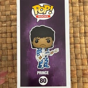 Funko Pop Rock vinyl Prince figurine. Dressed in a blue and white suit with the famed guitar. Brand new in box.