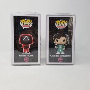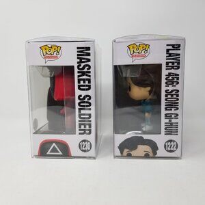 Funko Pop Squid Game Lot Exclusive Masked Soldier, Player 456 & Protective Cases
