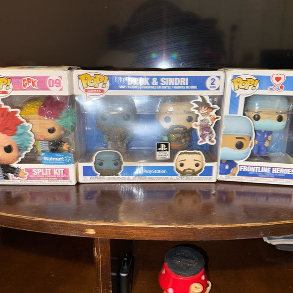 Trio of Funko Pop figures. Includes Split Kit, Mimir & Sindri, and Frontline Heroes. Vibrant and collectible. All 3 for the price as posted