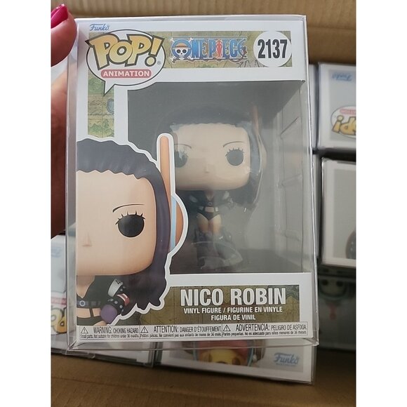 The product is a Funko Pop! Vinyl figure of Nico Robin from the One Piece series, specifically from the Egghead Arc. This collectible features the character Nico Robin in vinyl form, part of the Pop! Vinyl product line. The figure comes in box number 2137 and includes a protector for safekeeping. Perfect for fans of the anime and manga series, this Funko Pop! figure is a must-have addition to any collector's display.
