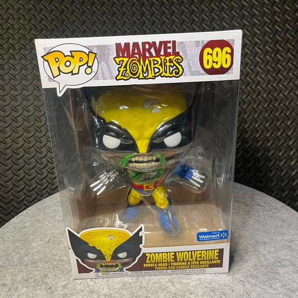Hey there! You are viewing a Funko Pop! Zombie Wolverine #696, a Walmart Exclusive, and a Jumbo-sized 10-inch figure from the Marvel Zombies series. This Funko Pop is in excellent condition and would make a fantastic addition to any Marvel or Funko collection. Grab it now to add a bit of undead superhero action to your display!