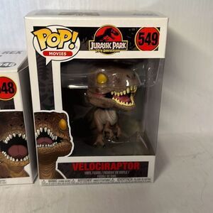 Funko Pop! Vinyl: Jurassic Park Velociraptor #549 and Tyrannosaurus Rex #548 25th Anniversary. I have 150 of these to list. Check back daily for new additions.